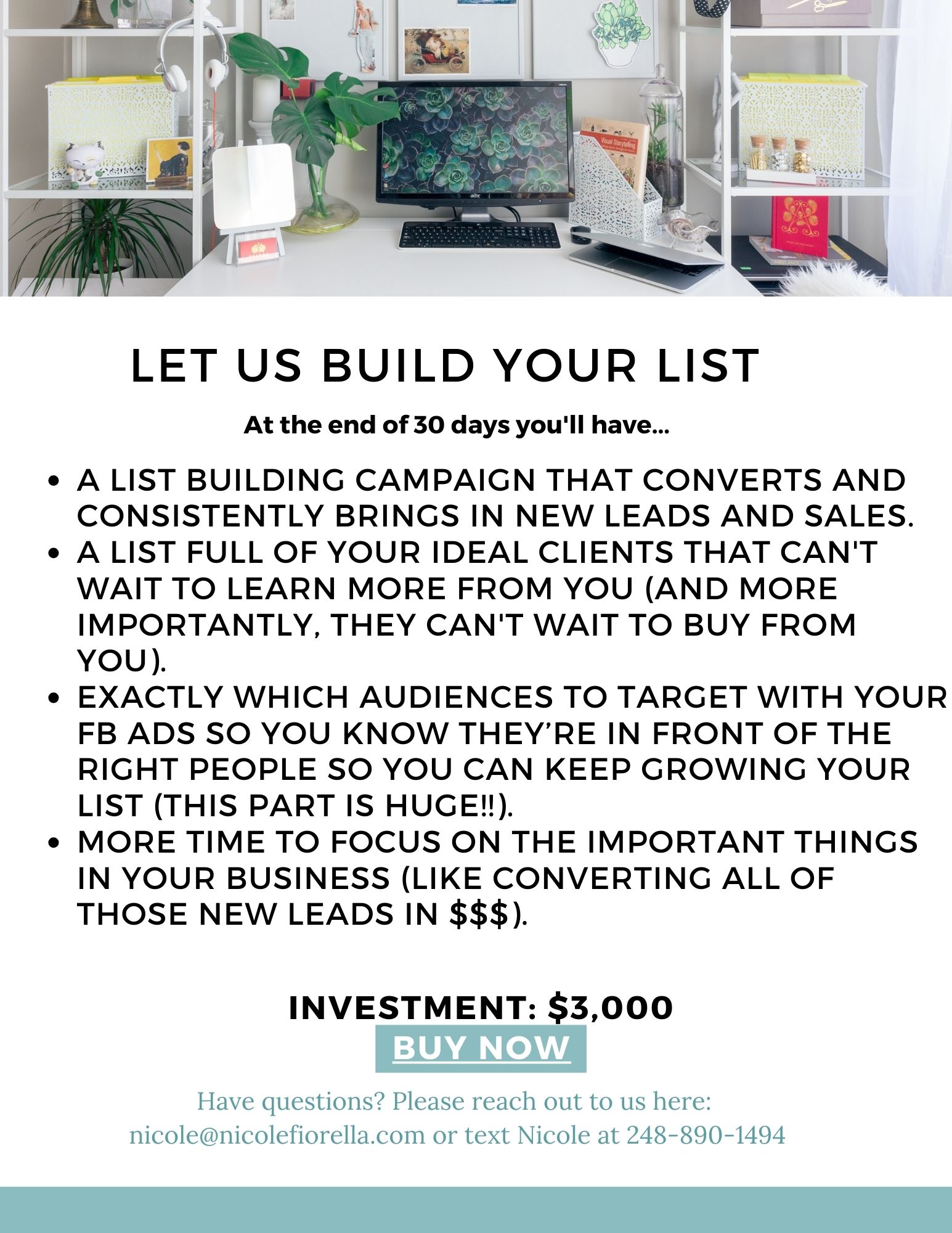 Once we've started working on your ads, we cannot offer a refund. If you have any questions about this offer or if it's the right fit for you please send us an email: nicole@nicolefiorella.com