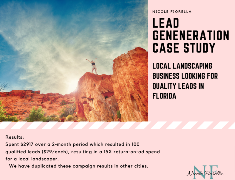 Our team created ads campaigns that spent $2917 over a 2-month period which resulted in 100 qualified leads ($29/each), resulting in a 15X return-on-ad spend for a local landscaper. We have since duplicated the process in other locations across the country. We also created and maintained these results in the months that followed.